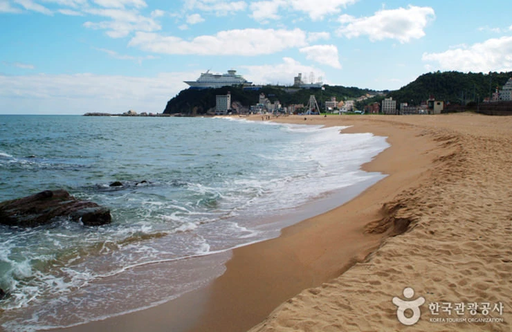 동해안 최대 해변으로 유명하며, 강문동, 안현동에 있고 시내에서 북으로 6km, 경포대에서 1km되는 곳에 동해의 창파를 가득 담고 펼쳐진 명사오리(明沙五里)이다. 모두를 삼키기라도 하려는 듯 밀려오는 파도, 이를 쓸어 안은 길이1.8km, 면적1.44㎢의 하얀 모래밭과, 시끄러운 일상을 조용히 차단하는 울창한 송림병풍의 조화가 해변 특유의 아름다움을 자아낸다. (자료출처 : 대한민국 구석구석 - korean.visitkorea.or.kr)
